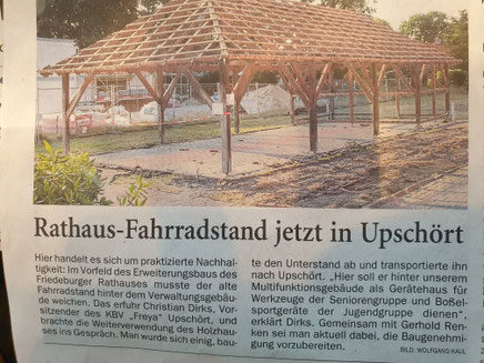 Wir haben die Möglichkeit den Fahrradunterstand der Gemeinde Friedeburg zu übernehmen. Dieser passt ideal auf den MFP. Und die ersten Aktionen sind dann durch die fleißigen Helfer bereits am 02. und 03. September angelaufen: